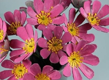 После - разрисовываем наш букетик яркими красками, придумываем им "тычинки" для большей схожести с настоящими, все это собираем вместе и ставим в красивую вазу.