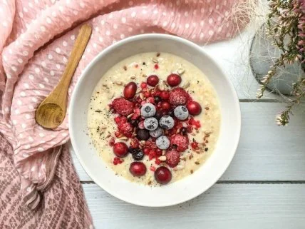 - Разложите манную кашу в тарелки и сверху посыпьте ягодами.