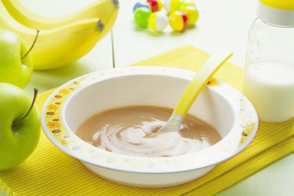 Рисовая каша. Пока лучше варить ее не из крупы, а из рисовой муки. Можно делать кашу на молоке, либо на овощном бульоне. Не старайтесь улучшать вкус риса сахаром, солью или специями. Ребенку в 7 месяцев это пока не нужно.