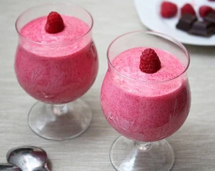 Когда каша остынет, влить в нее отжатый клюквенный сок, ванильный сахар, взбить венчиком. Взбивать до тех пор, пока масса не увеличится в два раза. Разлить мусс из манки по формочкам.