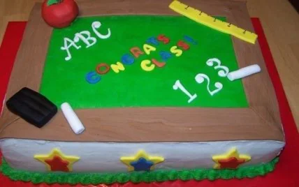 7. Делаем кондитерским шприцом надписи школьной тематики и все - торт к 1 сентября готов!