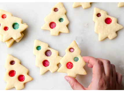 Мы уже рассказывали, как приготовитьрасписное глазированное печенье на елку, а вот еще один рецепт. Это печенье смело можно использовать в качестве kids friendly украшений. Во-первых, это вкусно. Во-вторых, детвора с удовольствием будет возиться с выпечкой и развешивать готовое печенье на елку. И потом, только представьте, как празднично будут переливаться огоньки гирлянды в витражных «окошках» вашего печенья.