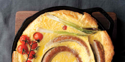 Основа пирога позаимствована из рецептуры открытых французских пирогов — кишей. В данном случае в пироге не будет основы из теста, а запекать его нужно непосредственно в сковороде. Рекомендую использовать чугунную сковородку, которая без проблем выдержит высокие температуры.