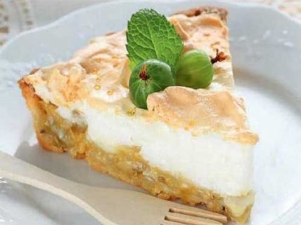 Пока пирог выпекается, взбейте белки яиц с оставшимся сахаром, щепоткой соли и лимонным соком. Пышную белковую массу равномерно распределите по поверхности горячего пирога с крыжовником и еще на 10 минут поставьте в духовку, чтобы белковая поверхность подсушилась и подрумянилась.