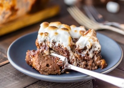 Выложите на поверхность пудинга оставшиеся маршмеллоу, и подержите в духовке несколько минут, пока он не поджарится.