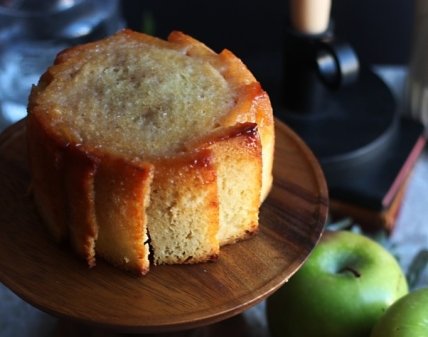 Пока яблоки тушатся, срежьте корочку с черствого батона и нарежьте его тонкими ломтями. Этими ломтями выложите дно и бока разборной формы для выпечки, вылейте в середину протушенные яблоки, и накройте их оставшимися ломтиками хлеба.
