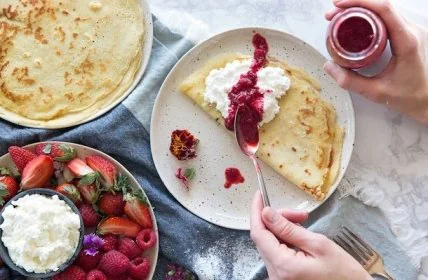 Скоро начнется Масленичная неделя, а значит – пора пробовать новые рецепты блинов. Мы предлагаем сделать блины без муки с творожной начинкой, которые отлично подойдут для праздничного семейного завтрака. Творожные блины без муки по рецепту Елены Касьян получаются нежными и вкусными.