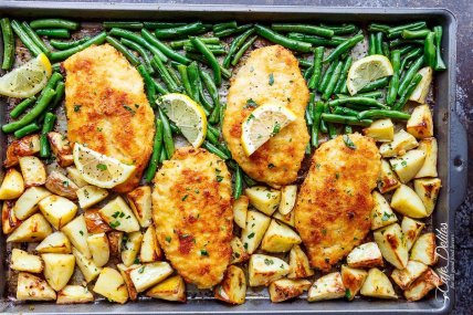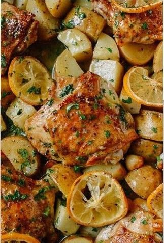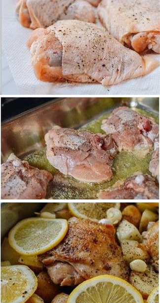 Картофель, запеченный с куриными бедрами и лимоном. Чтобы приготовить вкусный, сытный и быстрый ужин для семьи, возьмите куриные бедра, картофель, петрушку, чеснок, один лимон, соль и перец. Все ингредиенты, кроме курицы, покрошите и выложите все вместе на противень. Запекайте около 50 минут до образования хрустящей корочки.