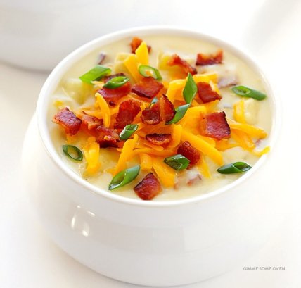 Картофельный крем-суп. Этот нежнейший суп понравится даже тем, кто не жалует первые блюда, ведь перед его густой, кремовой текстурой, неимоверным ароматом и божественным вкусом просто невозможно устоять. Готовится такой крем-суп из картофеля, лука, немного муки, сливок и сыра чеддер. Сверху готовый суп-пюре посыпается жареным беконом. Секрет этого блюда в достаточно длительном томлении на огне или в мультиварке – 4 часа.