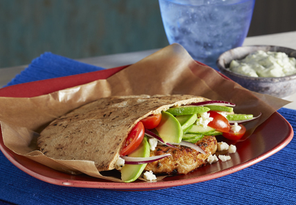 В каждый из двух "кармашков" питы вложите лист салата, половину яйца, тонко нарезанные дольки авокадо, половину котлеты, болгарский перец или огурец. Количество овощей регулируйте по вкусу.