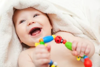 Во время переодевания, кормления или купания маме стоит активно разговаривать с ребенком: отвечать на его улыбки, рассказывать малышу обо всем, что происходит вокруг. Играя и общаясь с малышом, следует помнить, что нужно дать возможность высказаться каждому по очереди. Все это называется социальными играми.
