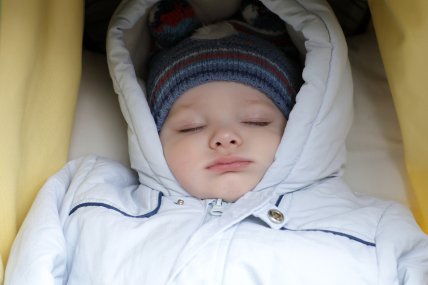 2. Также при обещаемой погоде и отсутствии ветра не рекомендуется одевать капюшон на шапку. Капюшон поверх головного убора создает парниковый эффект, вредный для головки малыша.