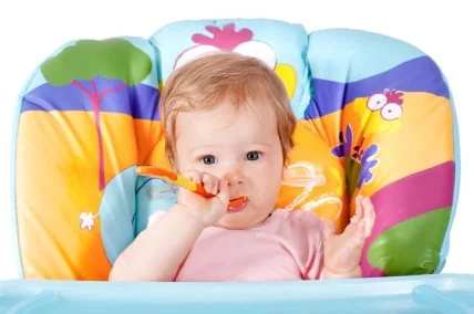 • ребенок уже садится (это важно, т.к. кушать ему предстоит в специальном детском стульчике);