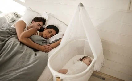 Новые инструкции рьяно запрещают совместный сон родителей и ребенка в одной кровати, но если родители среди ночи встают, чтобы покормить или успокоить ребенка, делать это нужно на кровати, а не на диване или кресле, которые опасны для детей грудного возраста.