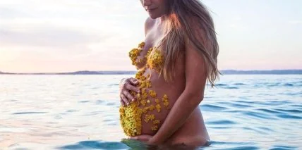 Фотограф украшает грудь и живот своей беременной девушки лепестками цветов (Фото)