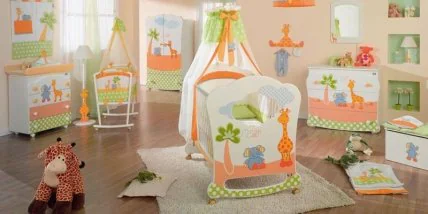 Краски – водоэмульсионные, они не создают вредных испарений, воздухопроницаемы. Если позволяют финансы, используйте латексные акриловые водоэмульсионные краски, их можно мыть, и они устойчивы к истиранию. Стены и потолок желательно окрашивать в светлые, спокойные тона, которые не оказывают неблагоприятного влияния на зрение ребенка, а мебель и игрушки пусть будут яркие, привлекающие внимание.