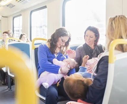Женщина кормит грудью в супермаркете в проходе между стеллажами. Мать кормит своего ребенка в поезде по дороге домой. Муж кормит ребенка из бутылочки, в то время как его жена сцеживает молоко, сидя в пустом ресторане.