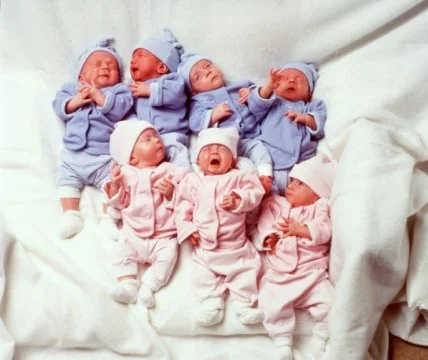 19 ноября 1997 года Бобби Маккоги и ее муж Кенни из Айовы стали героями мировых таблоидов. А все потому, что они стали первыми родитеями, которых знает наука, давшими жизнь сразу семерым детям, КАЖДЫЙ из которых выжил. Малышей назвали Кенни-младший, Алексис, Натали, Келси, Натан, Брэндон и Джоэл. При рождении детишки были очень маленькими, что и понятно. Они весили от 1,13 до 1,54 килограммов.