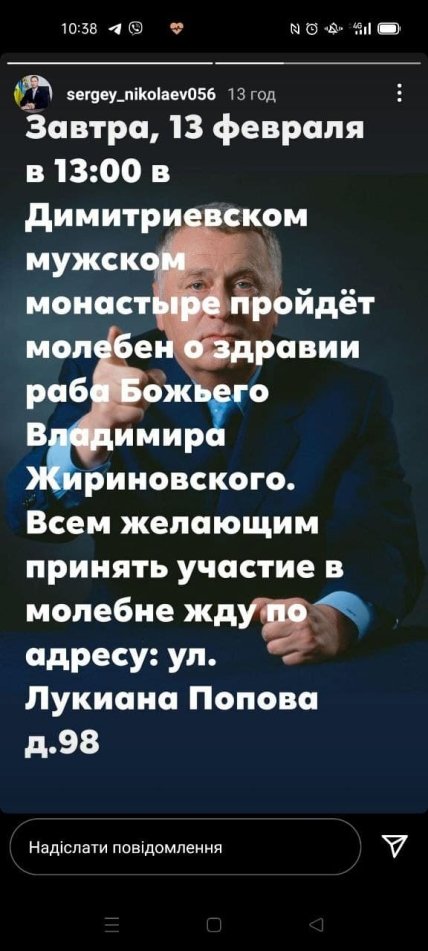 Он сообщил, что в воскресенье, 13 февраля, в Димитриевском мужском монастыре в Оренбурге пройдет молебен о здравии Владимира Жириновского. Мероприятие запланировано на 13:00 по местному времени.