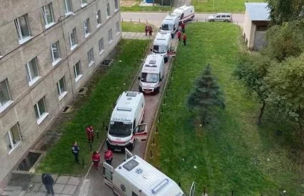 Во Львове 5 октября госпитализировали с коронавирусом 81 человека, в связи с чем у местной инфекционки выстроилась целая очередь из автомобилей "скорой помощи".