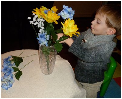 Оформляем букет. Это развивает у ребенка креативность, воображение, творческий подход и фантазию. И не обязательно постоянно использовать живые цветы, для начала можно потренироваться и на искусственных.