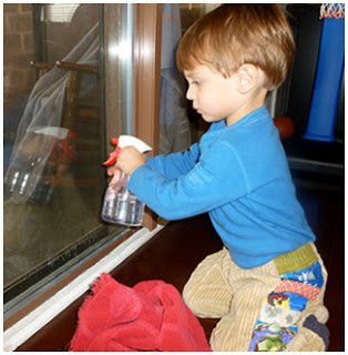 Митье окон и посуды. Привлеките своего маленького помошника к уборке в доме. Малыш может помочь вам помыть или вытереть посуду, окна, зеркала. Играя таким образом, вы получите неимоверную самоотдачу от ребенка. Главное —сдерживайте себя, чтобы не переделывать все за ребенком, просто позвольте ему похозяйничать.