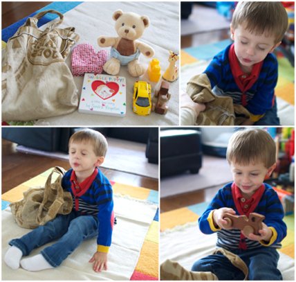 Сумка для определения предметов. Занимательная игра на развитие сенсорики, где ребенку на ощупь надо угадывать предметы, спрятанные в сумке. Поверьте, восторгу малыша при правильном угадывании не будет предела.