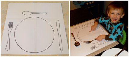 Накрываем на стол. Нарисуйте схемы, по которым ребенок сможет правильно расставить приборы, и расскладывайте их на стол перед тем, как собраться на семейный обед/ужин.