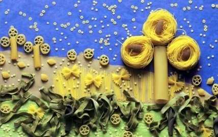 Макаронные аппликации. Макароны хорошо крепятся клеем ПВА или крахмальным клейстером к любой поверхности - бумаге, цветочному горшку, бутылке, рамочке для фотографий... Красиво смотрятся макароны-ракушки, бантики и бабочки. Готовое изделие можно раскрасить - получится необычно и стильно.