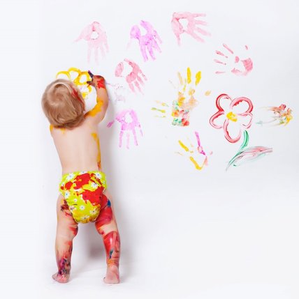 Малыши, которые пока не могут удержать в руках кисточку или карандаш, тоже охотно рисуют и создают свои картины. Вполне успешно у детей от 1 года получается рисовать пальчиками, выражая таким образом на бумаге свои эмоции и чувства. Ну а для родителей эти рисунки пальчиками – первые художественные шедевры малыша.