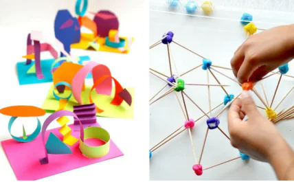 Чтобы занять ребенка дома с пользой и без особых затрат, дайте ему пластилин и зубочистки (есть съедобная версия игры с маршмеллоу и соломкой) и предложите создать объемные фигуры, используя пластилин для соединения палочек.