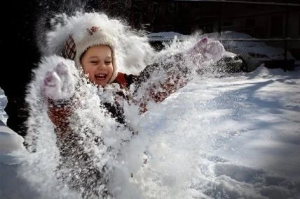 - малыш будет активно мерять сугробы, играть в снежки и лепить снеговика;