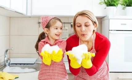 - Губка, детское мыло и посуда. Медленно показываем мастер-класс по мытью кастрюли и предлагаем карапузу помыть, н-р, чайник.