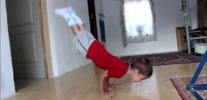5-летний мальчик отжимается под прямым углом (ВИДЕО)