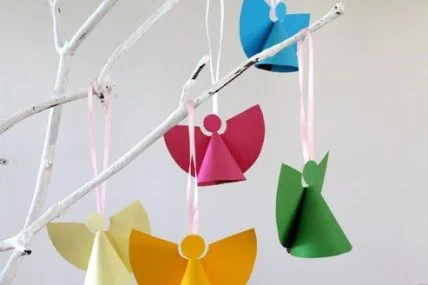 Вы можете не продевать ленту, если не планируете вешать ангелочка как украшение, а расставите их рядом с тарелками как часть праздничной сервировки стола. Это как и выбор цвета бумаги, дополнение блестками, узорами и т.д – целиком и полностью на усмотрение вас и ваших маленьких помощников. Главное в этой поделке ее простота и атмосфера праздника, которую она привнесет.
