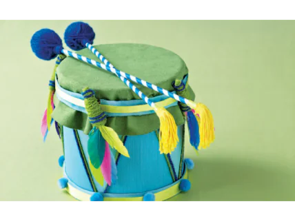 После этого шарики обмажьте клеем и замотайте в пряжу. Карандаши также можно украсить ленточками, стикерами или обмотать бумагой. Перед тем, как начать создавать музыку на барабане, сделанном своими руками, дайте всему как следует высохнуть, чтобы ни детский барабан, ни палочки к нему не разлезлись.
