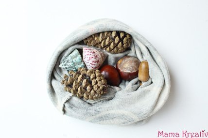 Самая простая из развивающих игр с каштанами для детей: мешок со всякой всячиной. Складываете в мешочек или шапку различные природные материалы: камни, ракушки, желуди, каштаны, шишки. Просите ребенка закрыть глаза и достать что-то одно из мешка. Суть игры в том, что ребенок должен наощупь угадать, что именно ему попалось.