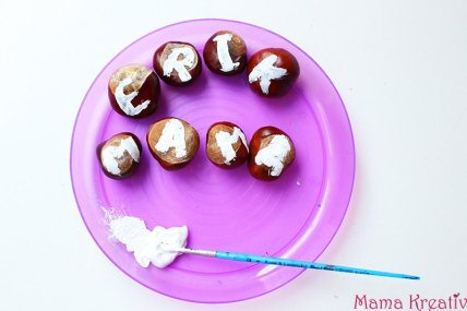 Еще одна развивающая игра с каштанами, которая поможет подготовить ребенка к школе. Рисуем на каштанах буквы и учим их или пробуем составлять слова, если ребенок уже знаком с алфавитом.