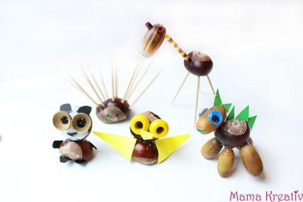 Поделки из каштанов - тоже можно считать разивающей игрой для детей. Ведь ребенок, пока мастерит очередного монстра из каштанов и желудей, скрепляя их пластилином, он ищет варианты, как реализовать свой проект, тем самым развивая не только творческое, но и так называемое инженерное мышление.