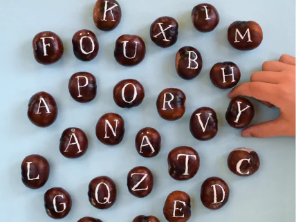 Еще одна развивающая игра с каштанами, которая поможет подготовить ребенка к школе. Рисуем на каштанах буквы и учим их или пробуем составлять слова, если ребенок уже знаком с алфавитом.