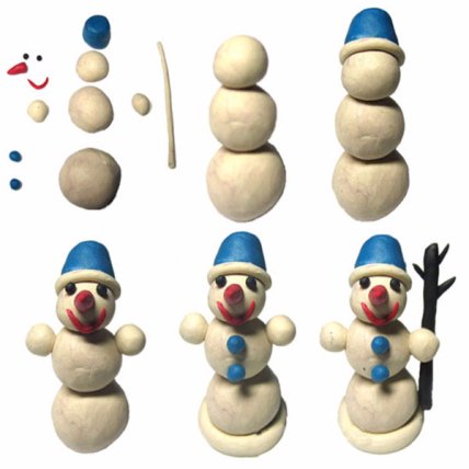 Лепить снеговика из пластилина проще всего: нужно сделать три шара из белого пластилина, морковку из оранжевого, и пару глаз - из черного. Чтобы шары лучше держались, можно использовать спички или зубочистки, и нанизать с их помощью один ком на другой.