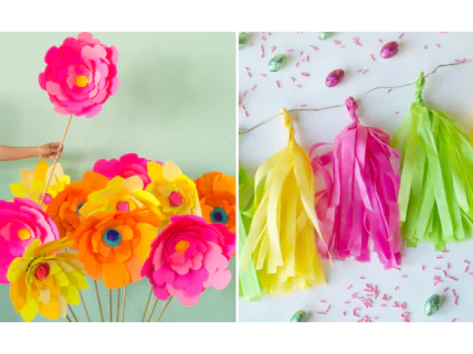 Гирлянды из гофрированной бумаги — не вчерашний день, а вполне себе современное решение для декора помещения на праздник. Если развесить эти большие гирлянды не под потолком, а вертикально вдоль стены, как занавески, получится отличная зона для фотографий.