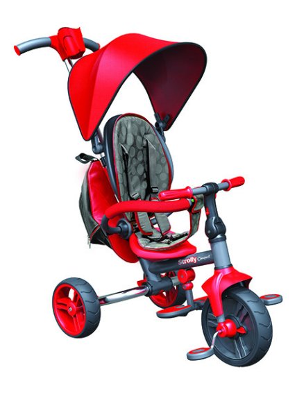 Strolly Compact має складну конструкцію, яка зручна при поїздках на автомобілі. Дитячий транспорт легко набуває компактну форму. Досить зняти деталі і скористатися системою складання. Скласти велосипед зможе навіть сама тендітна мама.