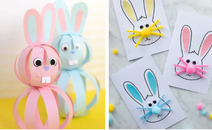 В детском саду или начальной школе детям можно предложить следующие варианты поделок на тему "Пасхальный кролик". Понадобится: цветная бумага, ножницы, клей, карандаши или фломастеры.