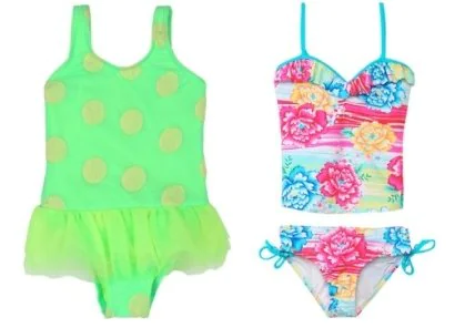 Ну и не забывай о том, что твоей моднице важно еще и внешний облик купального костюма, выбирай яркие модели, с декором в виде стразов, бусинок или рюшей.
