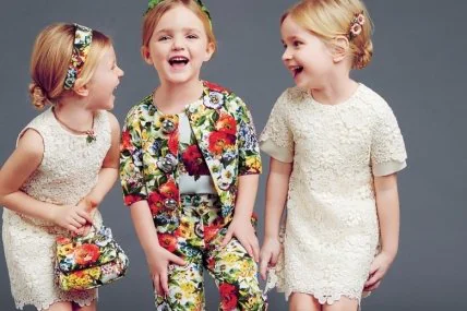 Самая актуальная расцветка в детских коллекция сезона весна-лето 2014 – это цветочный принт. Причем, в абсолютно разнообразном исполнении - в виде изящных распустившихся бутонов, веточек сакуры или расположенных в художественном беспорядке полевых цветов. Часто такой ансамбль дополняет красивый ободок с живыми цветами.