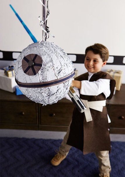 На дне рождении ребенка в стиле Star Wars обеспечить гостей развлечениями не составит труда, ведь идей для веселых игр по мотивам фильма очень много. Вы можете превратить комнату в зал для тренировки джедаев или поле битвы с имперскими штурмовиками, которых нужно сбивать мячем, или сделайте пиньяту своими руками в виде Звезды Смерти. Дети будут в восторге от такой игры.