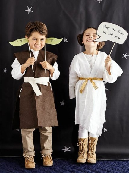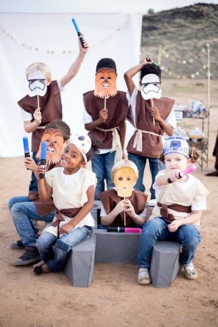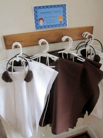 Вы можете попросить гостей прийти в тематических костюмах по случаю праздника в стиле «Звездных войн» или же подготовьте простые варианты костюмов сами. Вы также можете сделать картонные маски и раздать их детям на входе.
