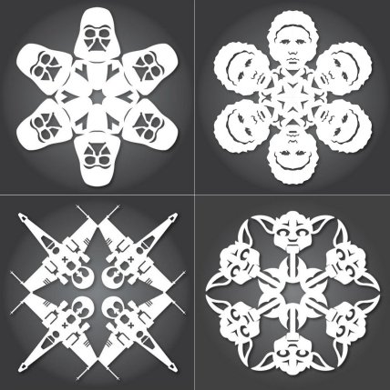 Снежинки в виде персонажей «Звездных войн» также станут прекрасным украшением помещения. Развесьте их на окнах или сделайте гирлянду-баннер для декора комнаты. Такими снежинками вы сможете украсить комнату ребенка и к Новому году.