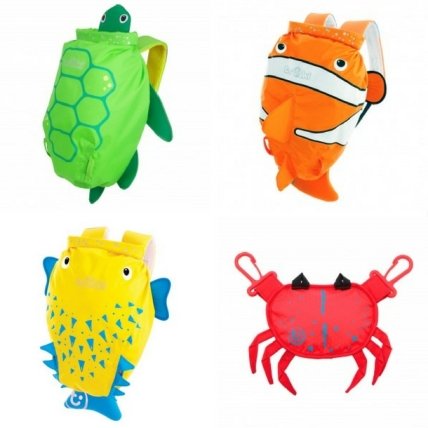 Яркие красочные рюкзаки Trunki PaddlePak для детей от 3 лет изготовлены из влагоустойчивого текстиля, поэтому идеально подойдут как для пляжка, так и для прогулок под дождем.